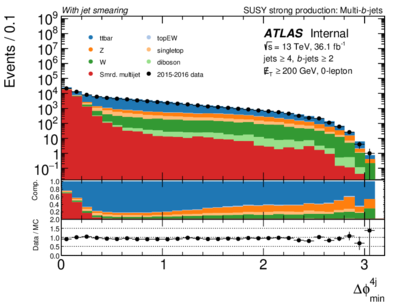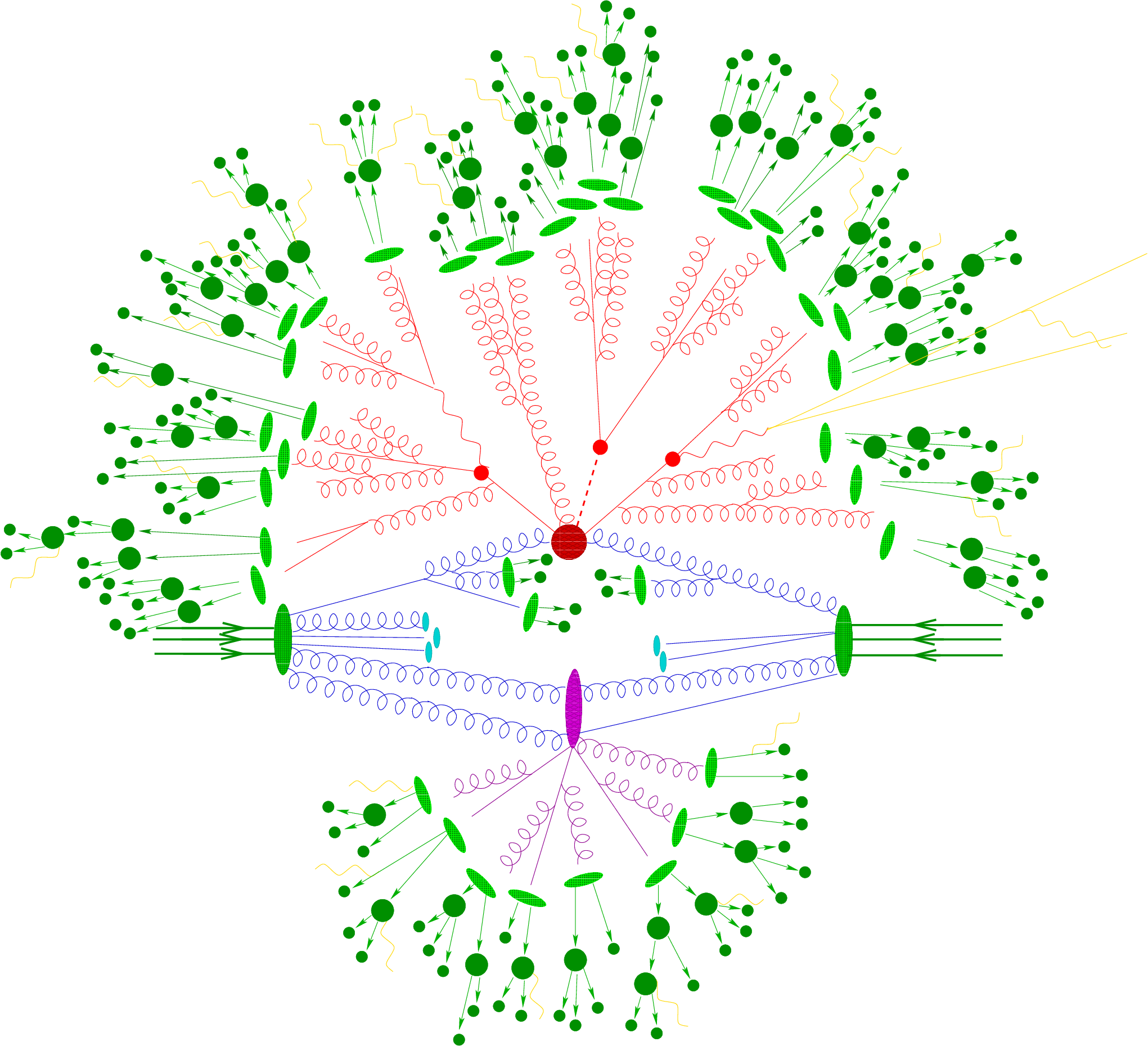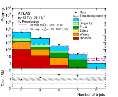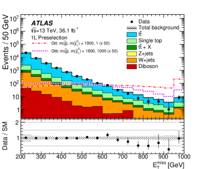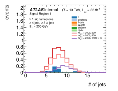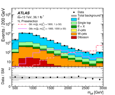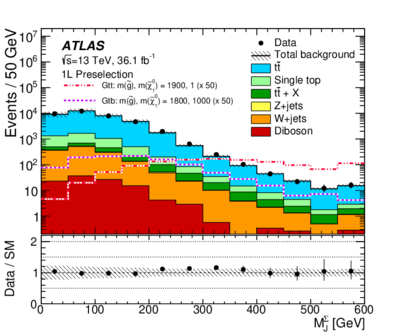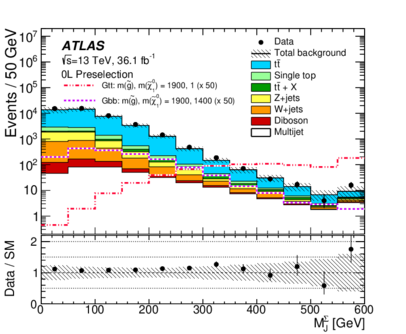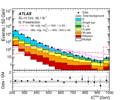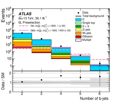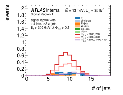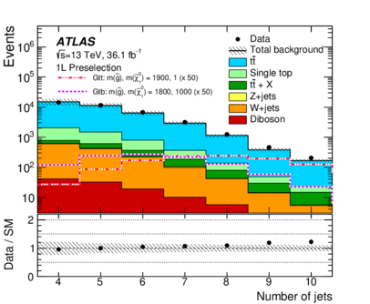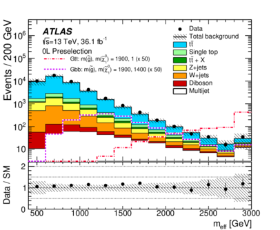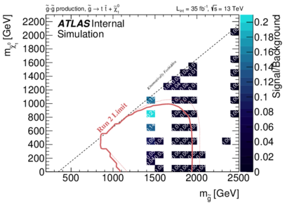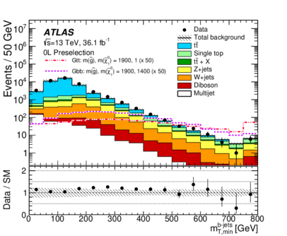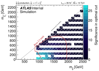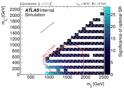 [253,254] Exclusion limits at 95% CL based on SI13TeV data for (a) ATLAS and (b) CMS in the (g̃, χ̃10) mass plane for different simplified models featuring the decay of the gluino to the lightest supersymmetric particle (lightest neutralino or gravitino) either directly or through a cascade chain featuring other SUSY particles with intermediate measses. For each line, the gluino decay mode is reported in the legend, along with the arXiv reference, and it is assumed to proceed with 100% branching ratio. Some limits depend on additional assumptions on the mass of the intermediate states, as described in the references provided in the plot (ATLAS [255,182,256,257,258,259,260]; CMS [261,262,263,264,265,266]). The search presented in this thesis is shown in magenta for ATLAS.